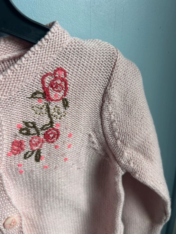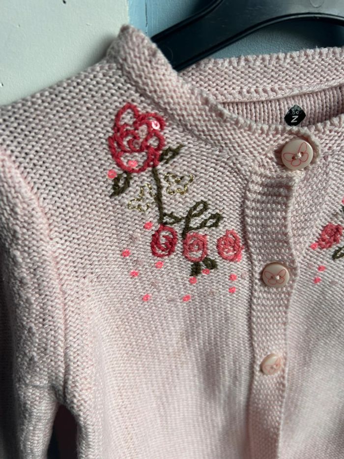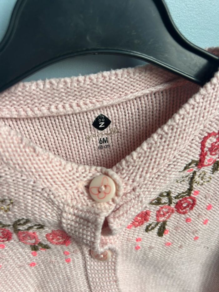 Gilet rose à fleurs, très bon état , grain de blé , très bon état, 6 mois #aurore90bebefille6mois #gilet