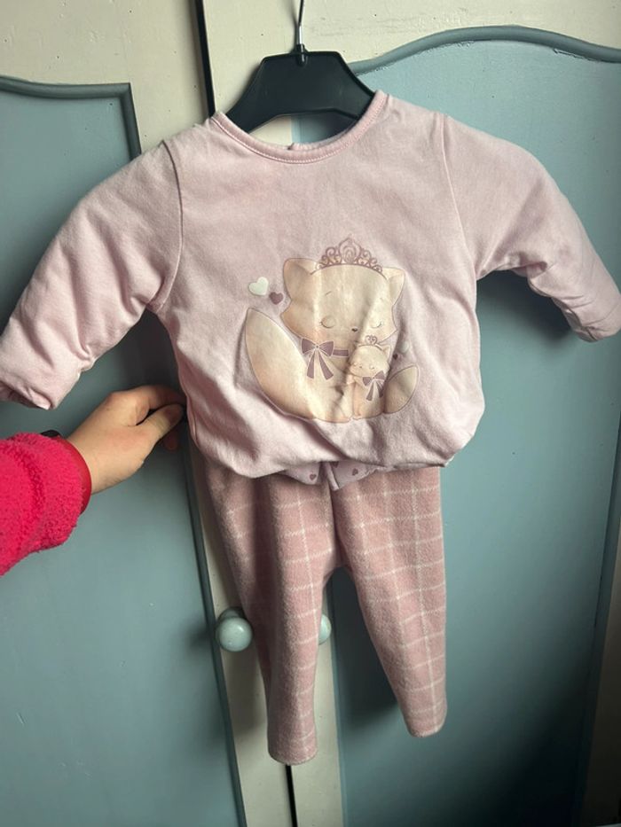Ensemble avec haut épais et pantalon polaire , motif chat, 6 mois , marque plus, très bon état #aurore90bebefille #ensemble #chat