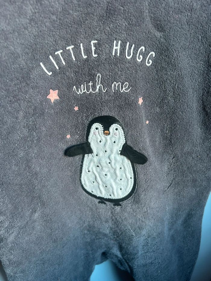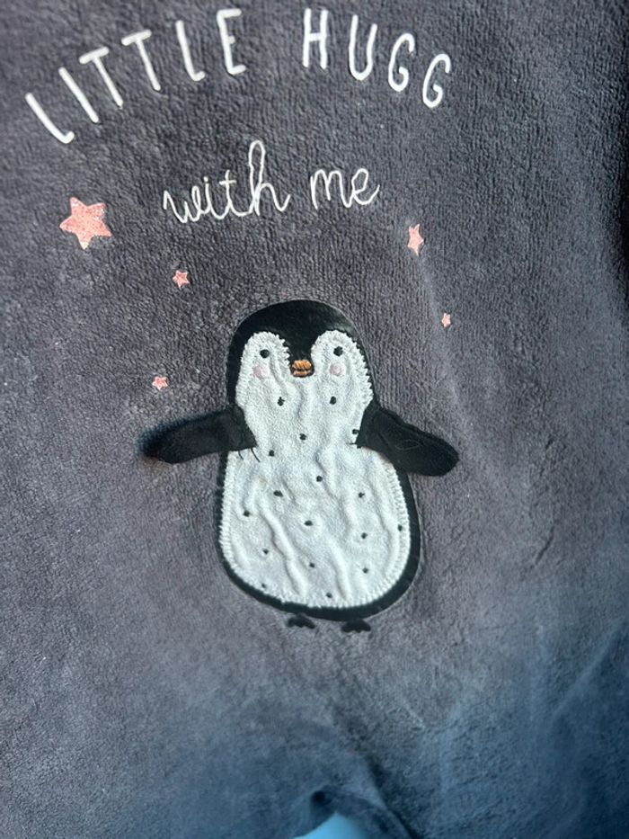 Pyjama velours gris, kiabi , motif pingouin, 6 mois , très bon état #aurore90bebefille6mois #pyjamavelours