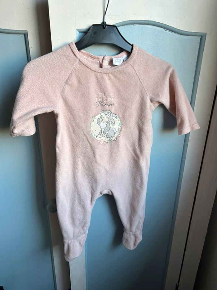 Pyjama velours hiver, rose motif panpan, bambi, Disney baby, ouverture par pression dans le dos,6 mois , très bon état #aurore90bebefille6mois #pyjamahiver #panpan