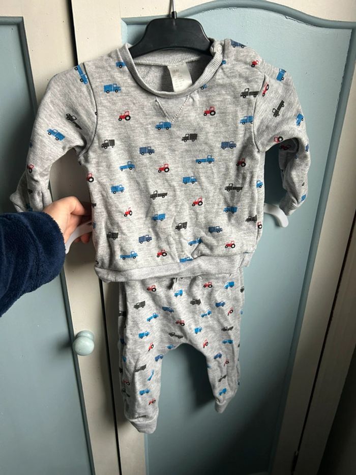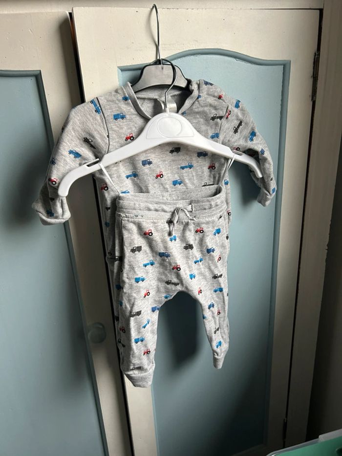 Ensemble gris molletonné, motif voiture , très bon état , 2-4 mois, H&M, mixte #aurore90bebe3mois #mixte