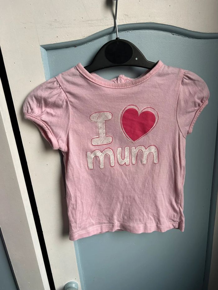 Tee shirt , rose , «  i love mum », kimbaloo, 6 mois, très bon état #aurore90bebefille6mois #été