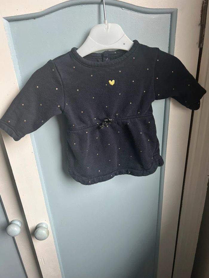 Petite robe kiabi , marine à pois dorés , assez épaisse , 1 mois , très bon état #aurore90bebefille1mois #robe