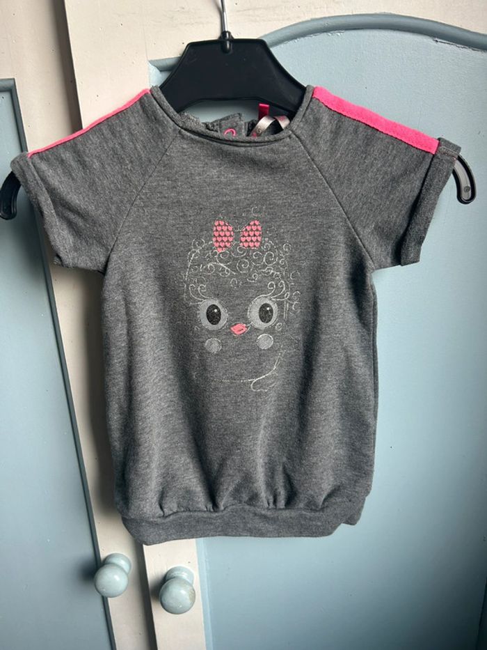 Robe sweat manches courtes, motif hibou , 6 mois, orchestra, très bon état #aurore90bebefille6mois #robesweat
