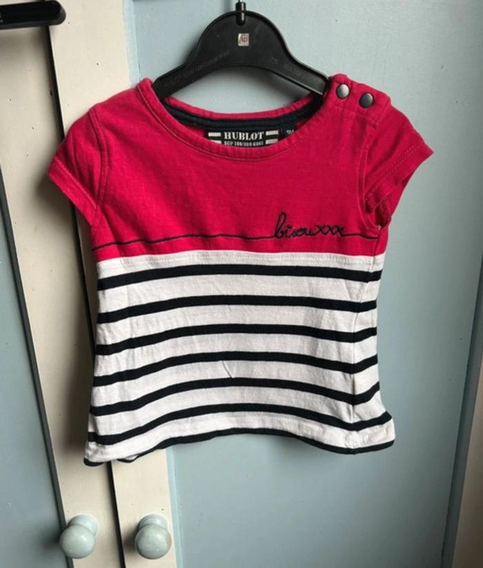 🌟 T-shirt Fuchsia à Rayures Hublot | 9 mois | Très bon état - photo numéro 3