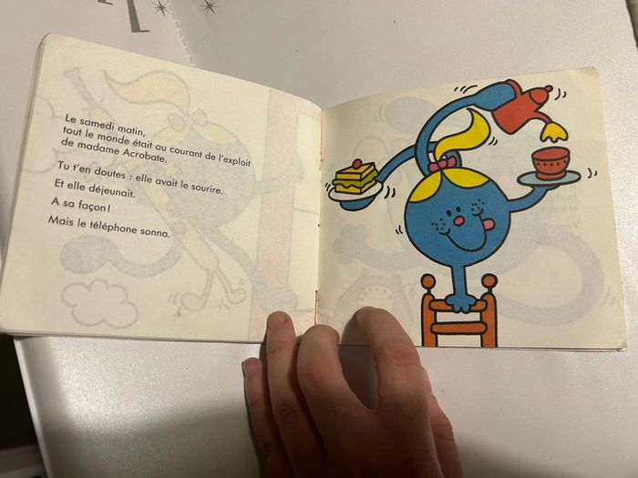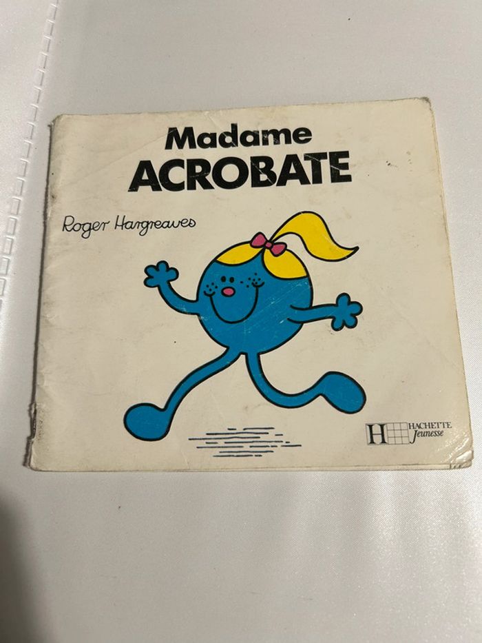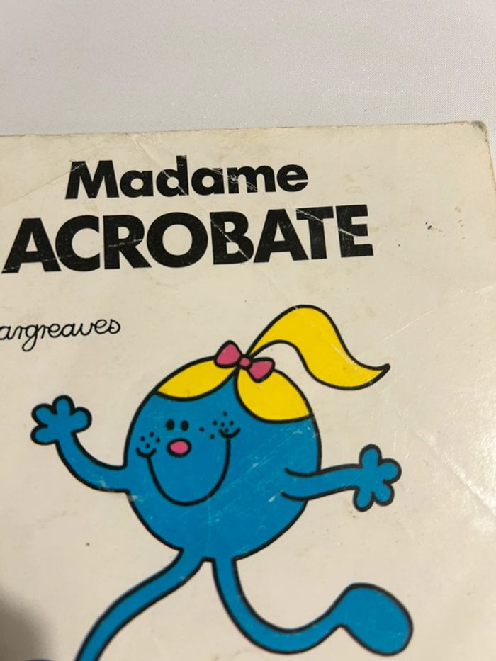 Livre madame Acrobate , années 90, collection Monsieur Madame , bon état , couverture abîmée par endroits , et une trace sur une page intérieure ( visible sur les photos ) , le reste est nickel D’autres monsieur madame dans mon dressing #aurore90livres #monsieurmadame #années90