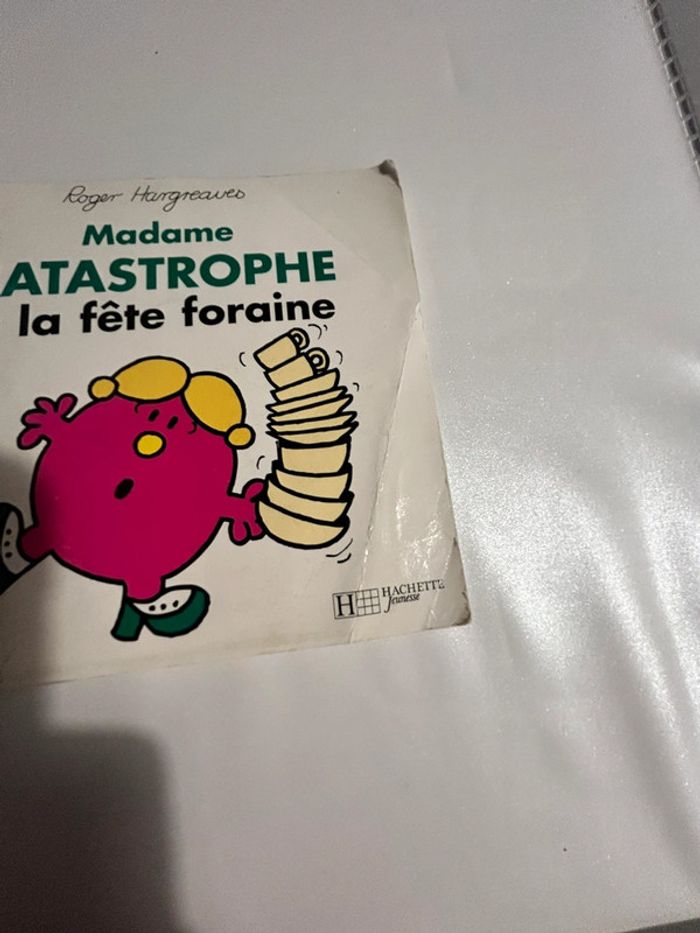 Livre monsieur et madame , madame catastrophe à la fête foraine, années 90, bon état , couverture légèrement abîmée par endroit et du stylo sur la dernière page, tout est visible sur les photos , l’intérieur est nickel D’autres livres monsieur et madame dans mon dressing #aurore90livres #monsieurmadame #années90