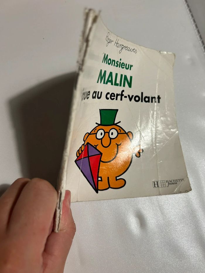 Livre monsieur madame, années 90, monsieur malin joue au cerf volant, bon état , la couverture est abîmée et arrachée , visible sur les photos , l’intérieur est nickel D’autres monsieur madame dans mon dressing #aurore90livres #monsieurmadame #années90