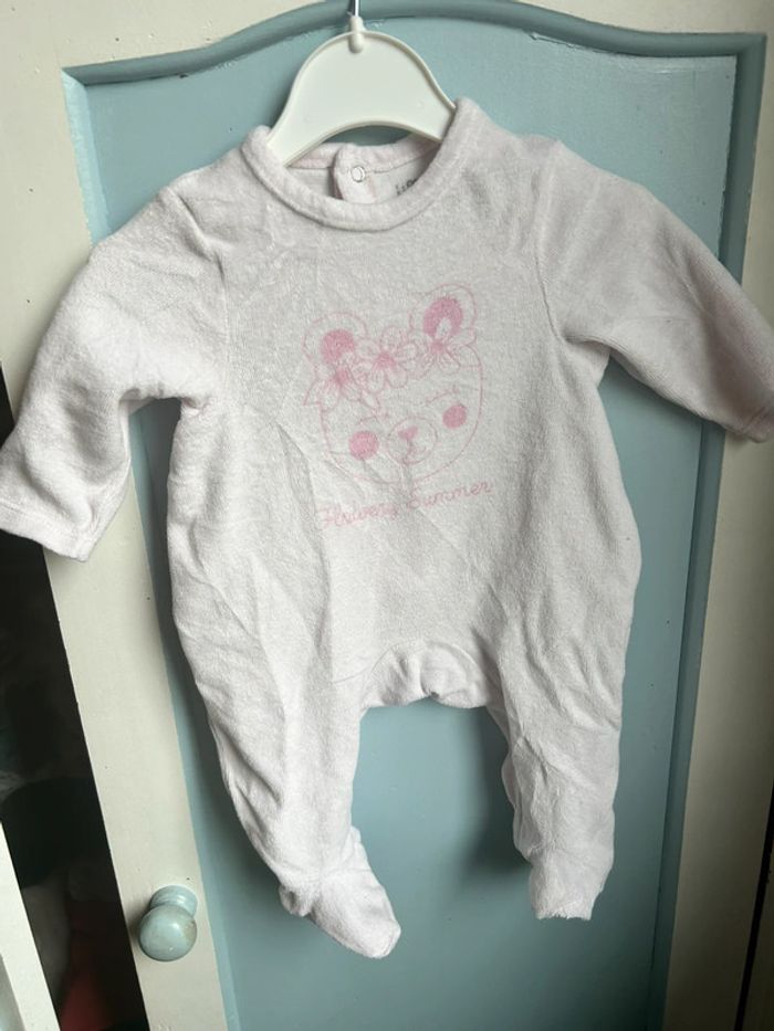 Pyjama hiver rose clair , orchestra, 1 mois , très bon état , ouverture par pressions dans le dos #aurore90bebefille1mois #hiver