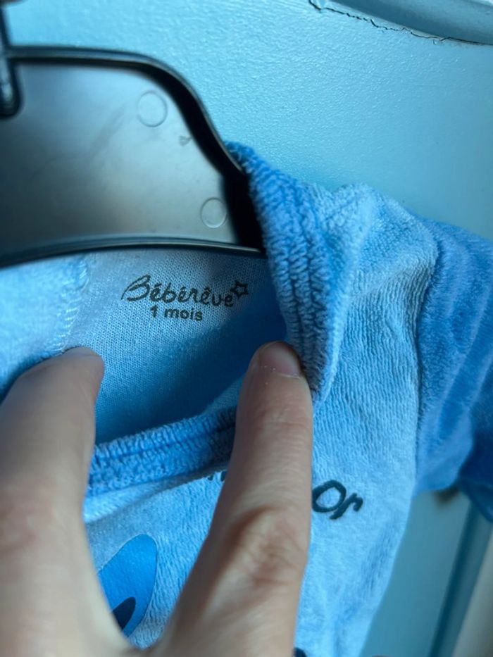 Pyjama velours bleu , hiver, 1 mois, marque bébé rêve , très bon état, ouverture par pression derrière, mixte #aurore90bebe1mois #hiver #mixte