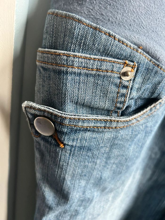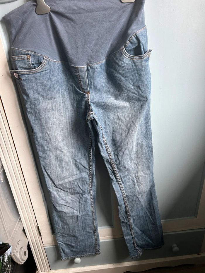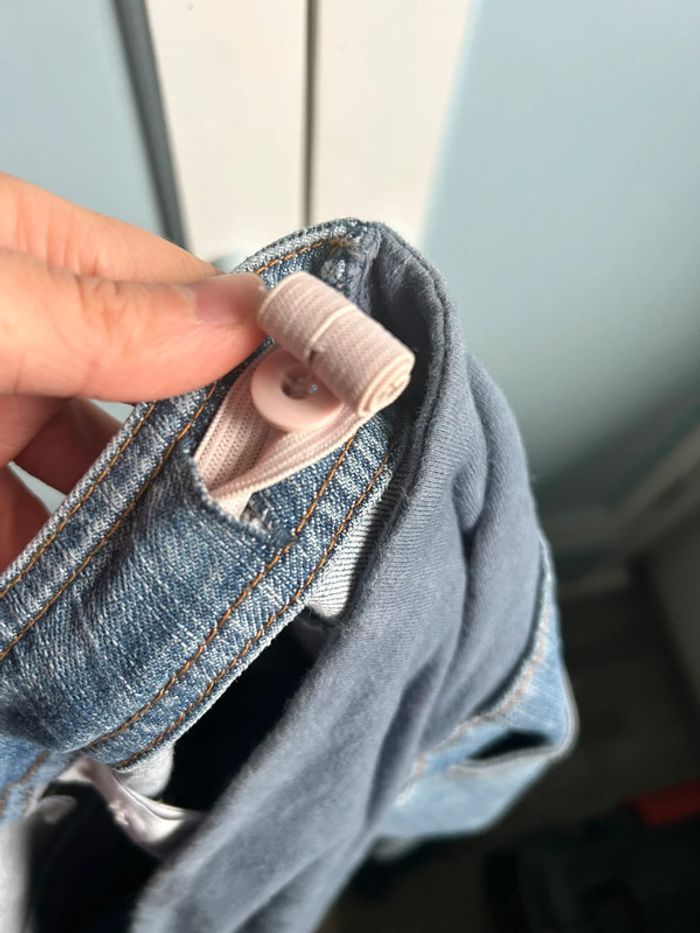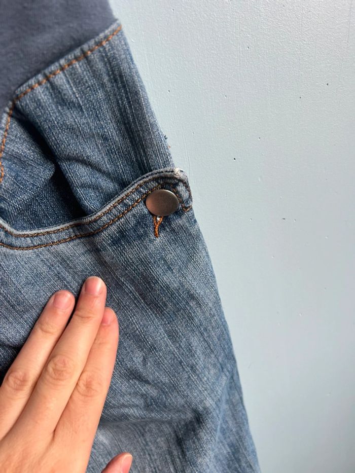 Jean de grossesse, taille 40 marque colline , avec bandeau et taille resserable avec élastique mais il manque un bouton, pour le reste est en très bon état #aurore90maternité #grossesse