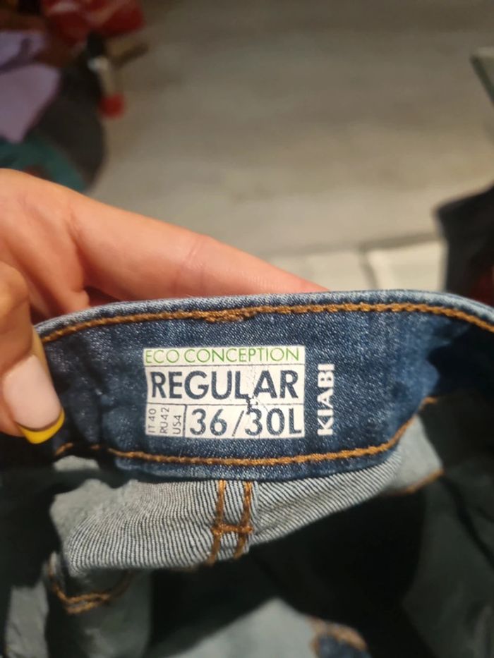 Jean regular 36, kiabi, bleu, très peu porté. Petite tâche sur le côté #somara66femme36