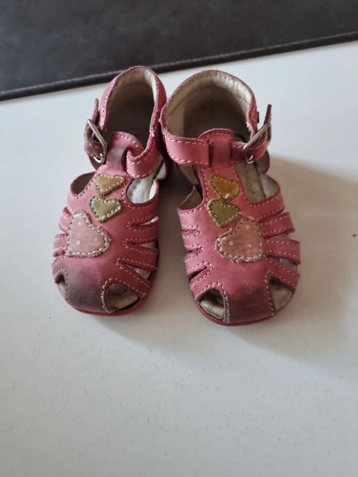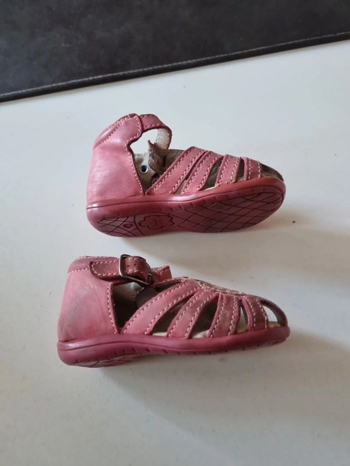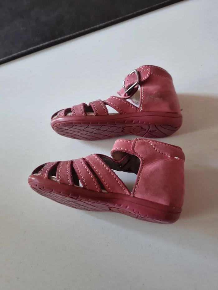 Sandales rose, pointure 18, couleur rose passée sur le devant, tenue talon et attache cheville, bopy #somara66chaussures