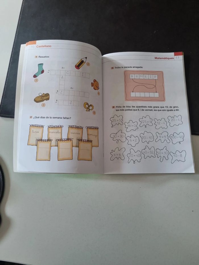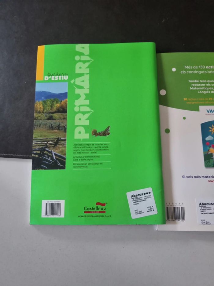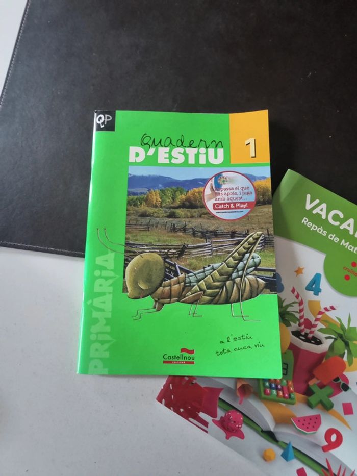 Lot 2 cahiers de vacances catalan, niveau primaire CP CE1, les 4 premières pages d'un des cahiers ont été faites. Sur 1 cahier, travail d'anglais et d'espagnol aussi #somara66livres