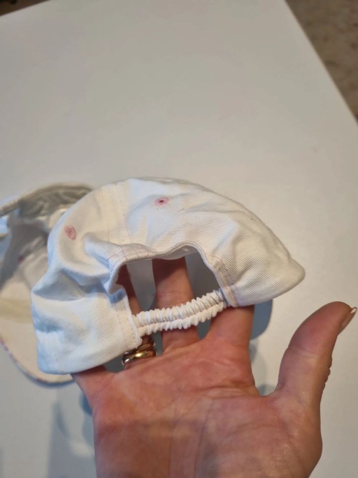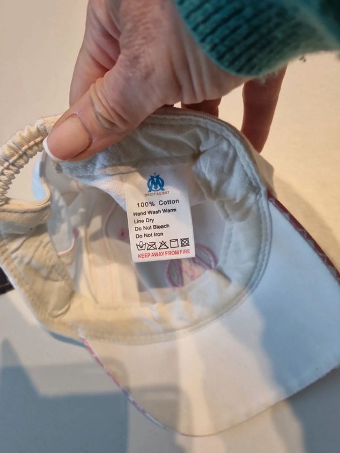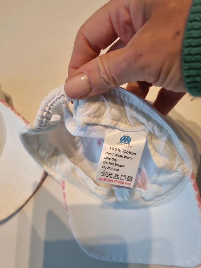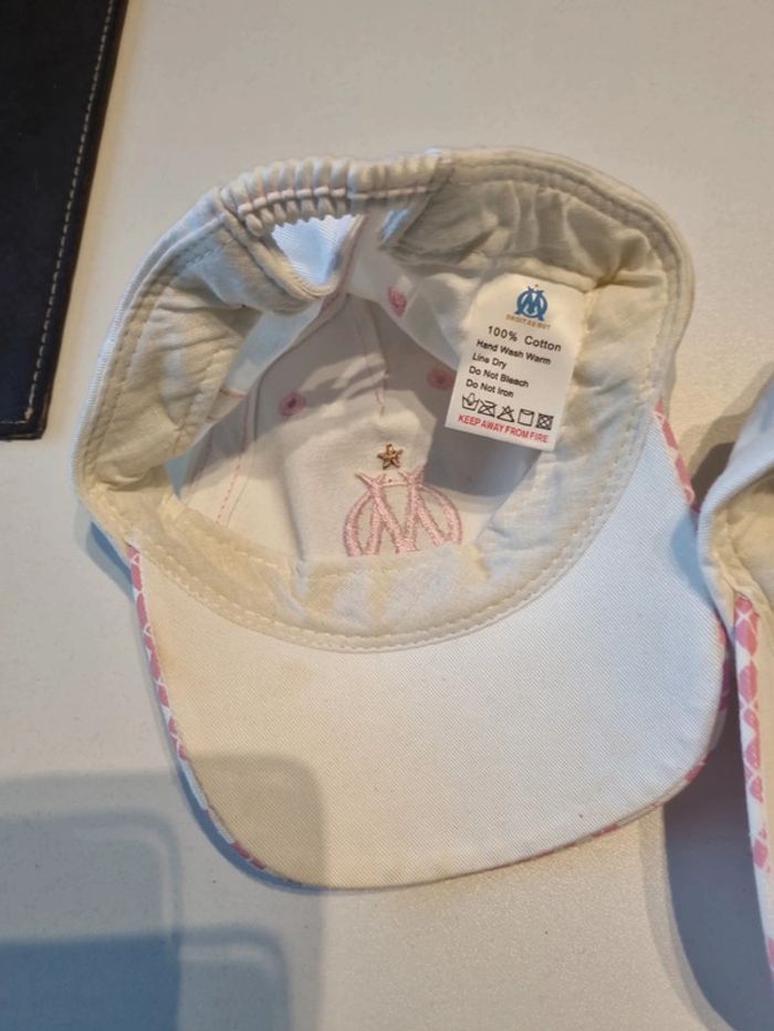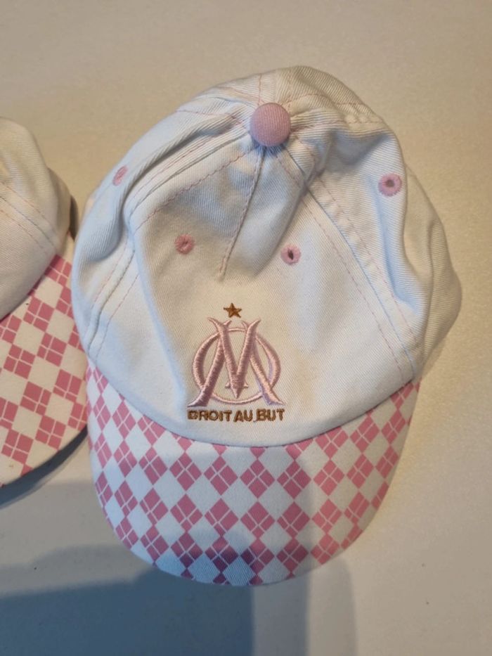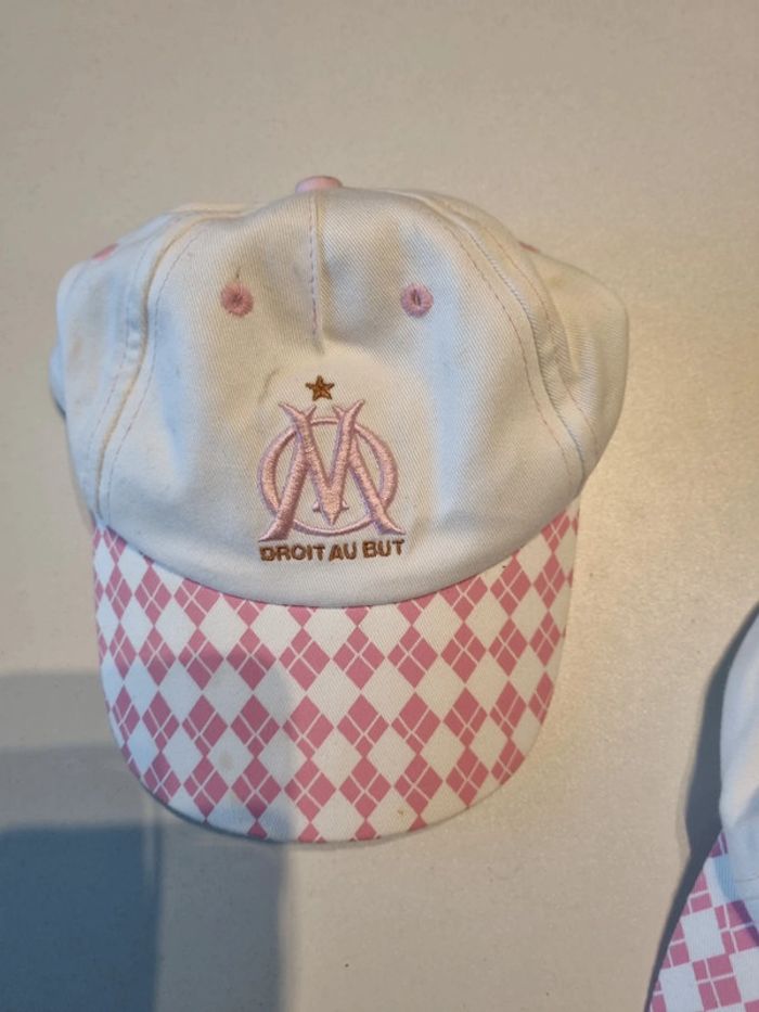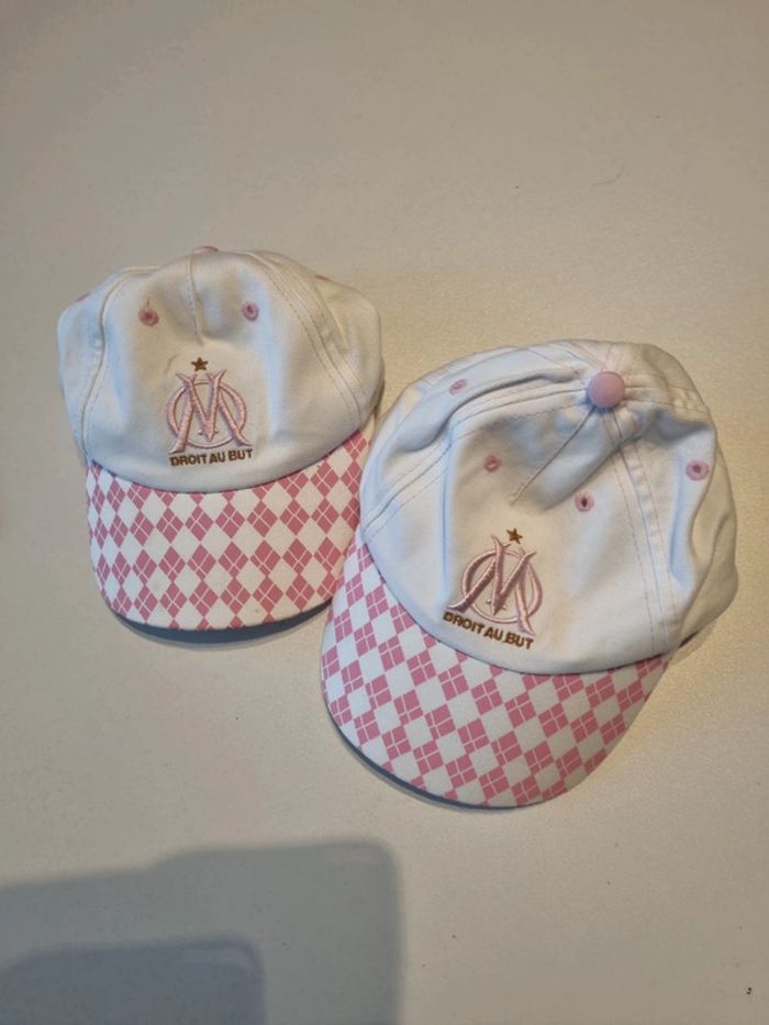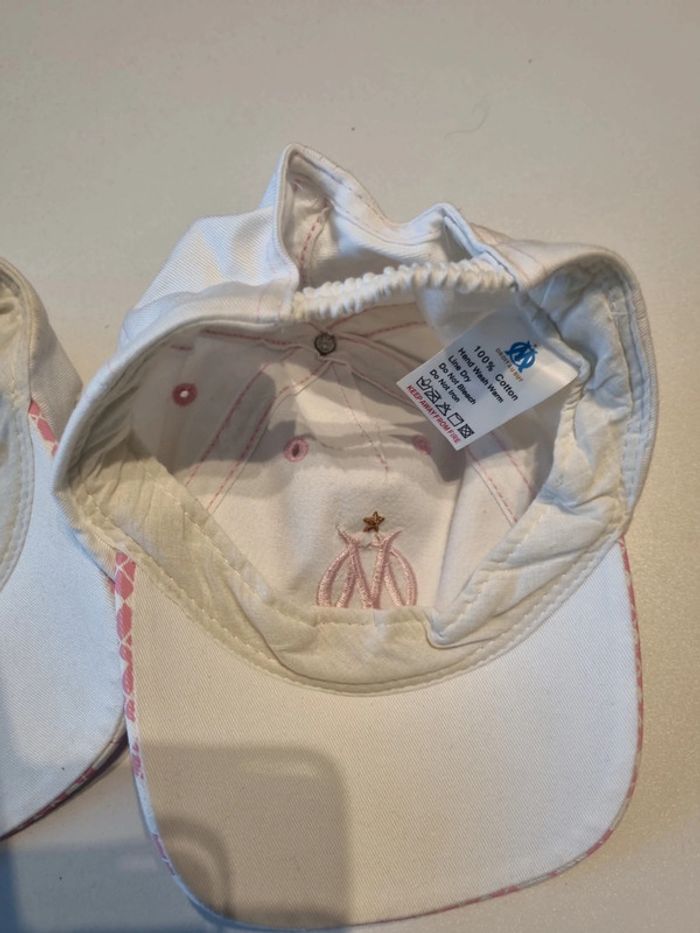 Lot 2 casquettes OM fille, blanches et rose, 1 en 47 et 1 en 49. Légères traces sur l'une #somara66chapeau