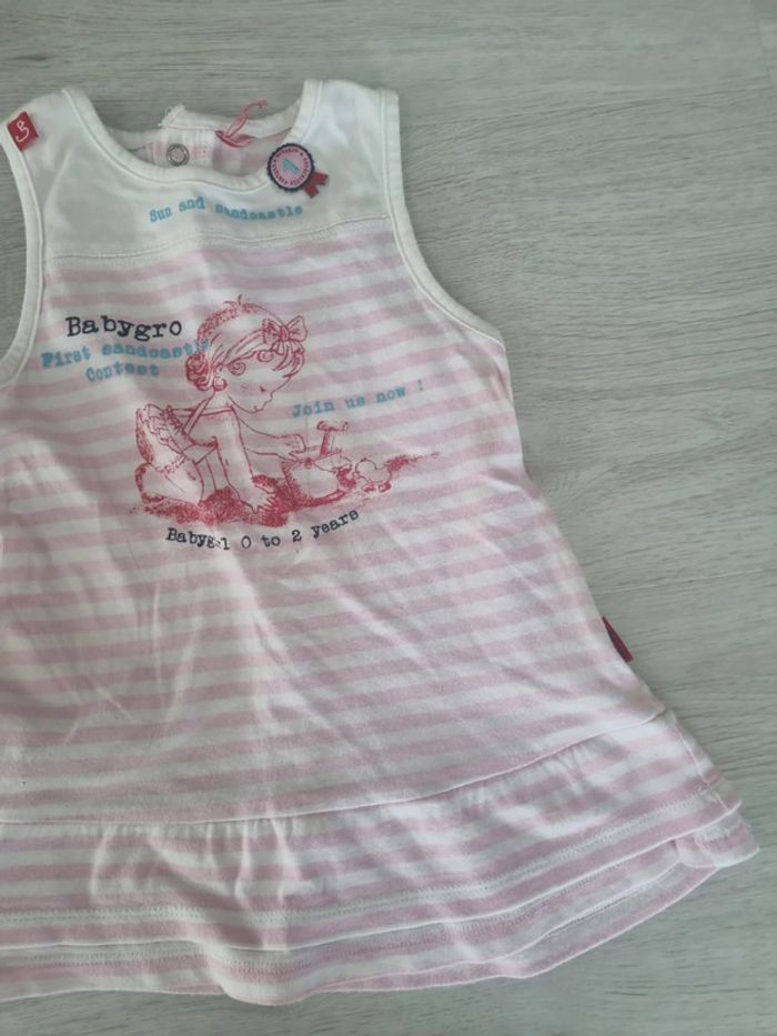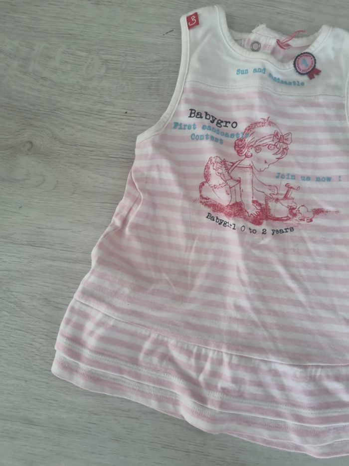 Robe tout coton baby gro, sans manches, petit volant sur le bas, rose et blanche à rayures, 12 mois #somara66fille12mois