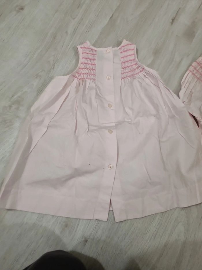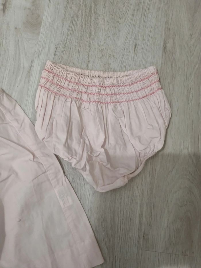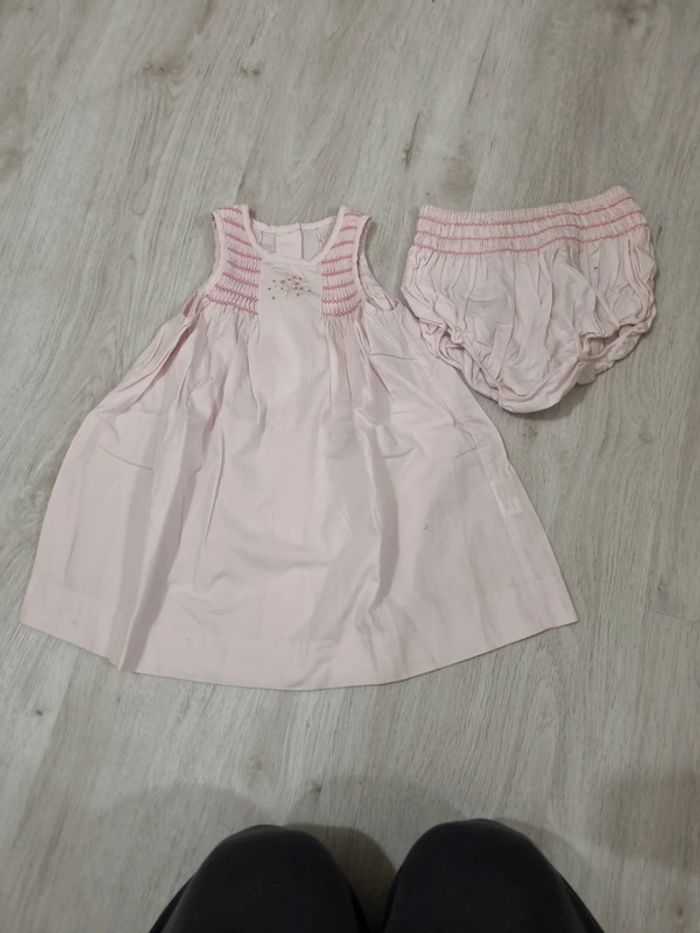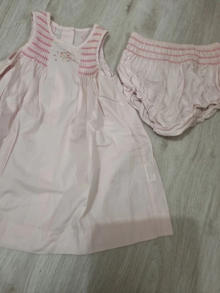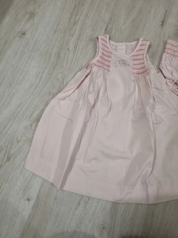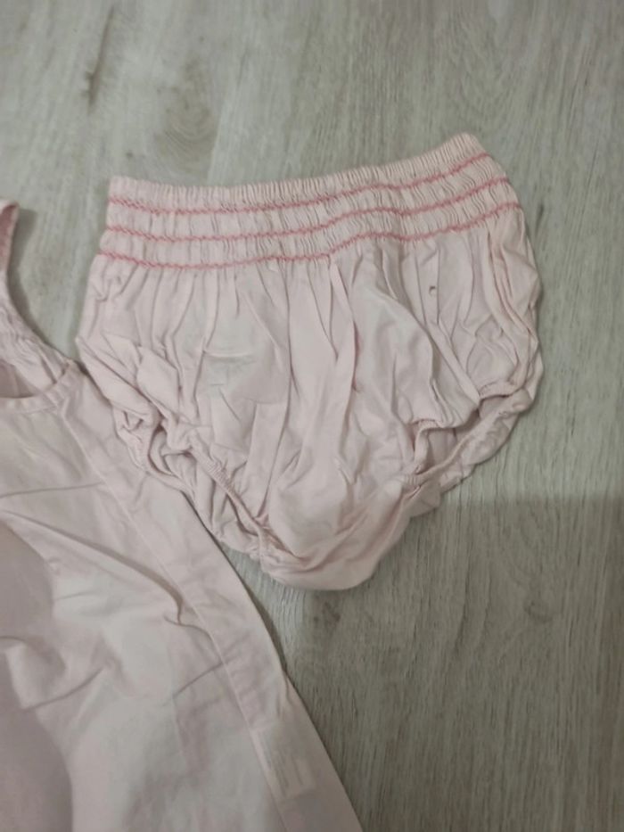 Robe jacadi rose clair sans manches et bloomer assorti. 12 mois. Tout coton #somara66fille12mois