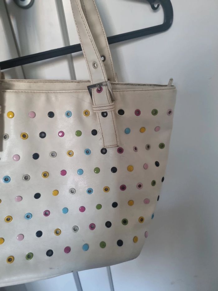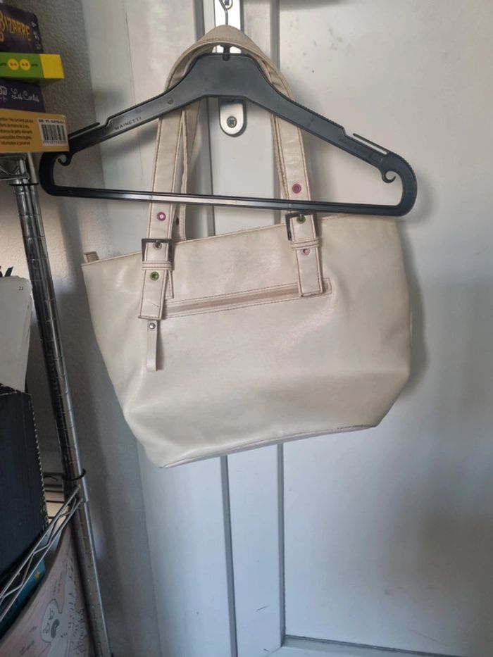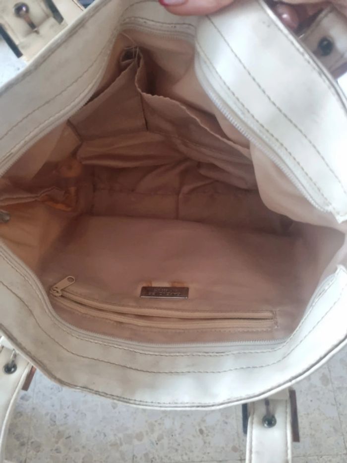 Sac à main cloutés, nombreuses poches, crème 39cm sur 25cm et 18cm de largeur, quelques légères traces #somara66sac