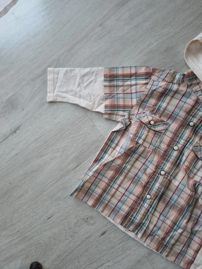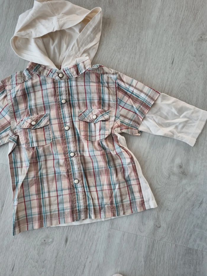 Chemise à capuche pression, bicolore, manches longues, ecossais, 12 mois #somara66garcon12mois