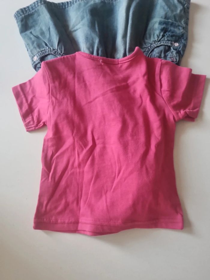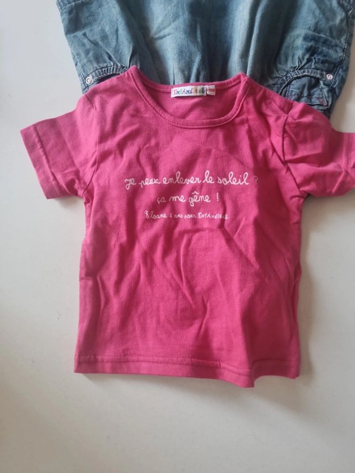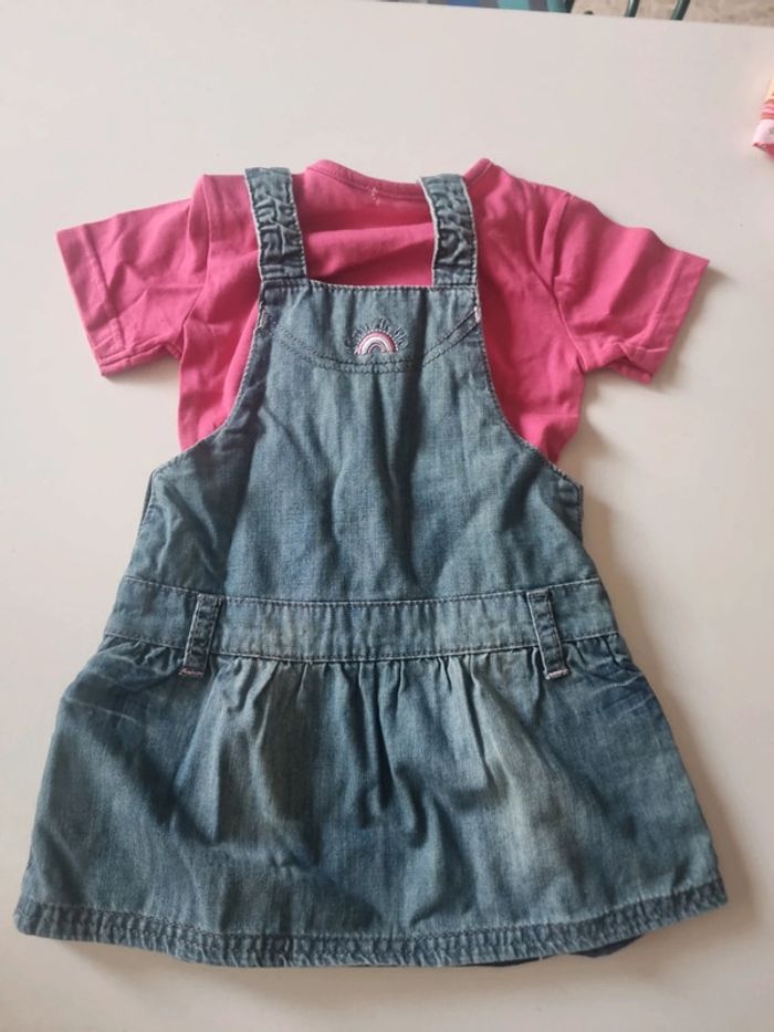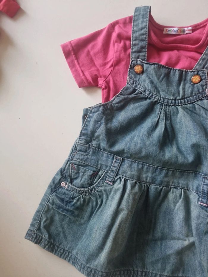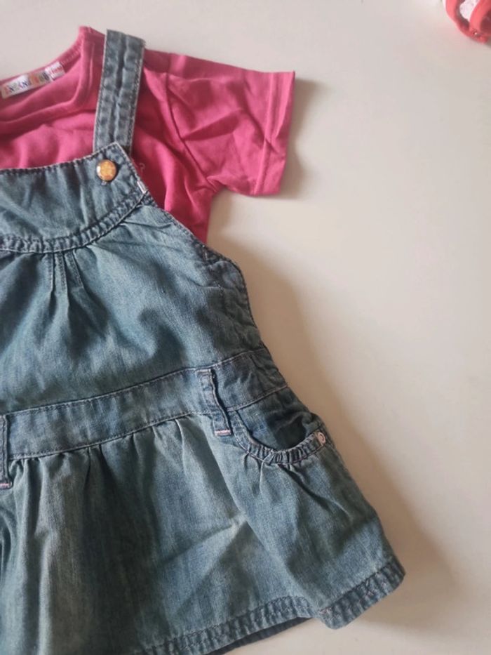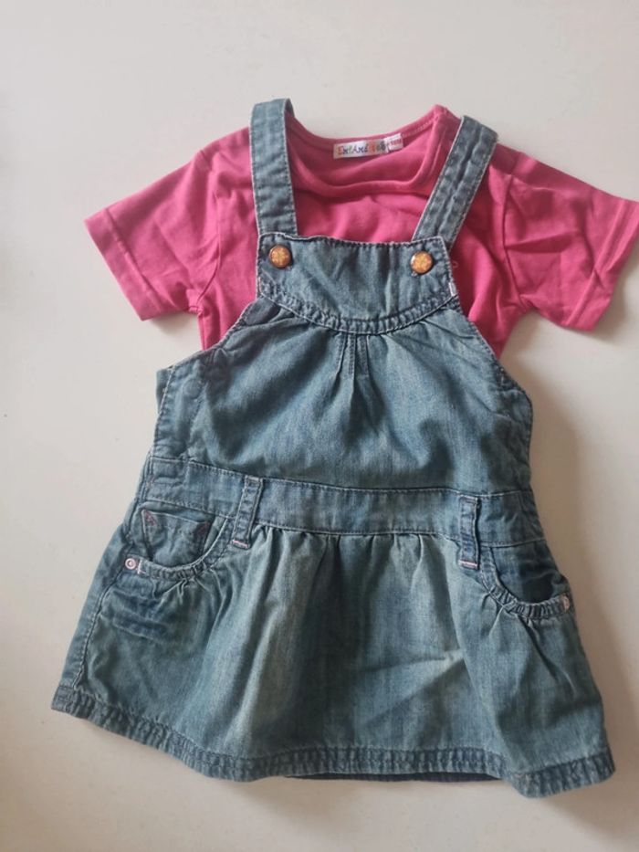 Ensemble 18 mois avec robe en jean à bretelles grain de blé et 1 Tee-shirt fuschia message exfandises #somara66fille18mois