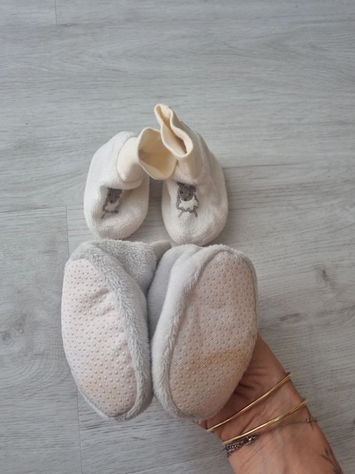 Lot 2 paires de chaussons mous bébé, les blancs 3-6 mois, les gris 6-9 mois avec tâche sur la semelle #somara66chaussures #somara66fille6mois #somara66garcon9mois