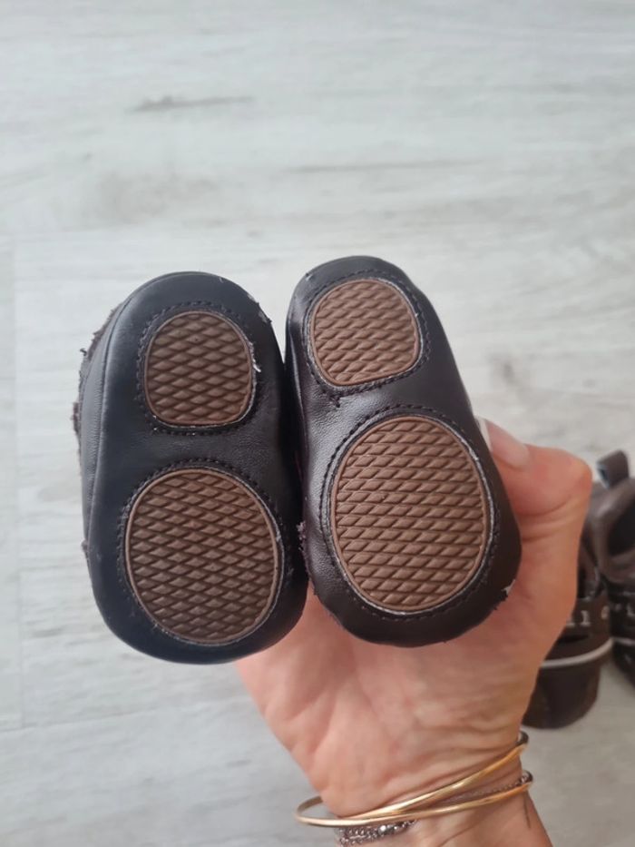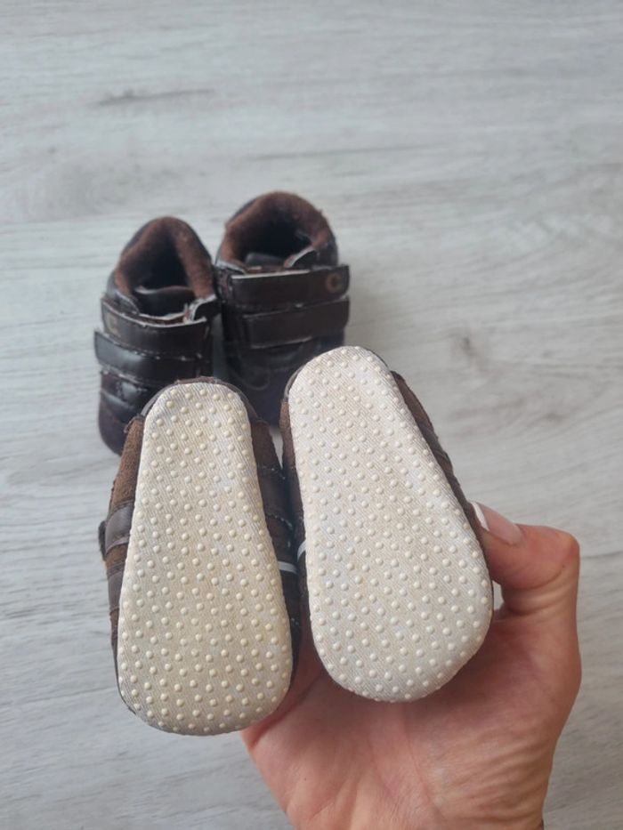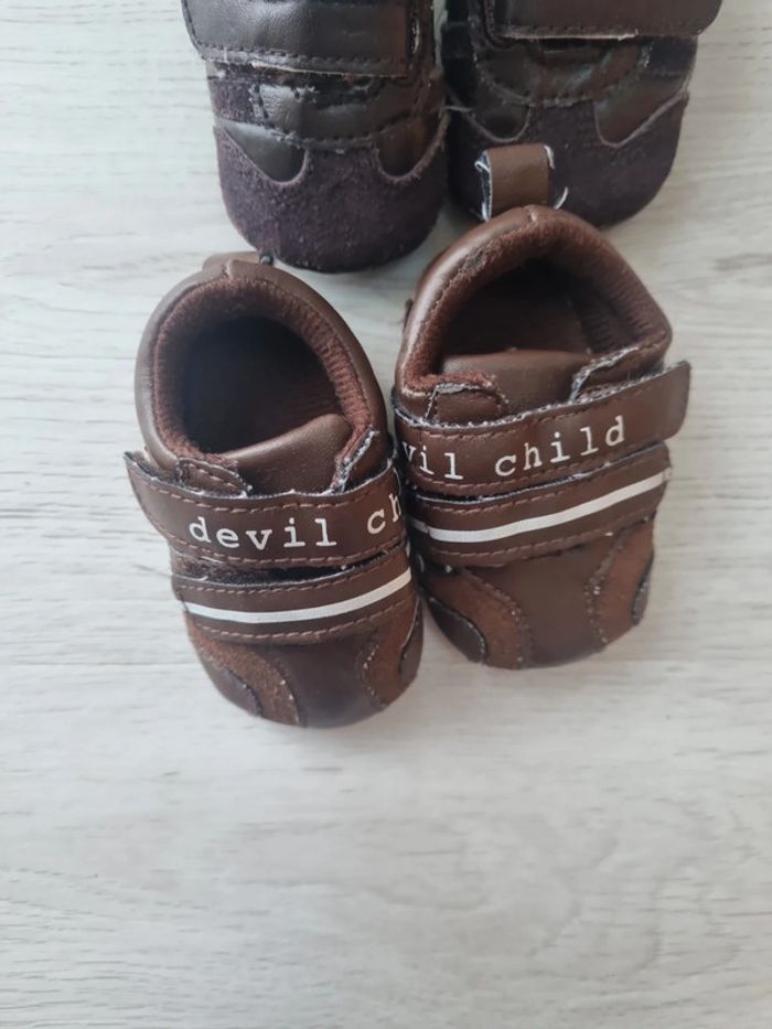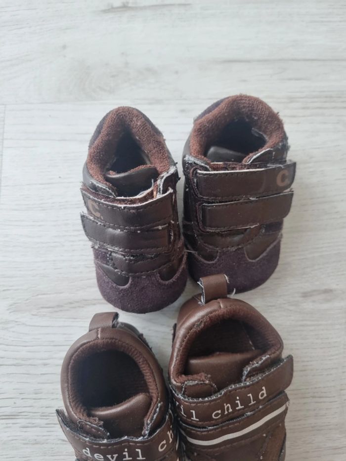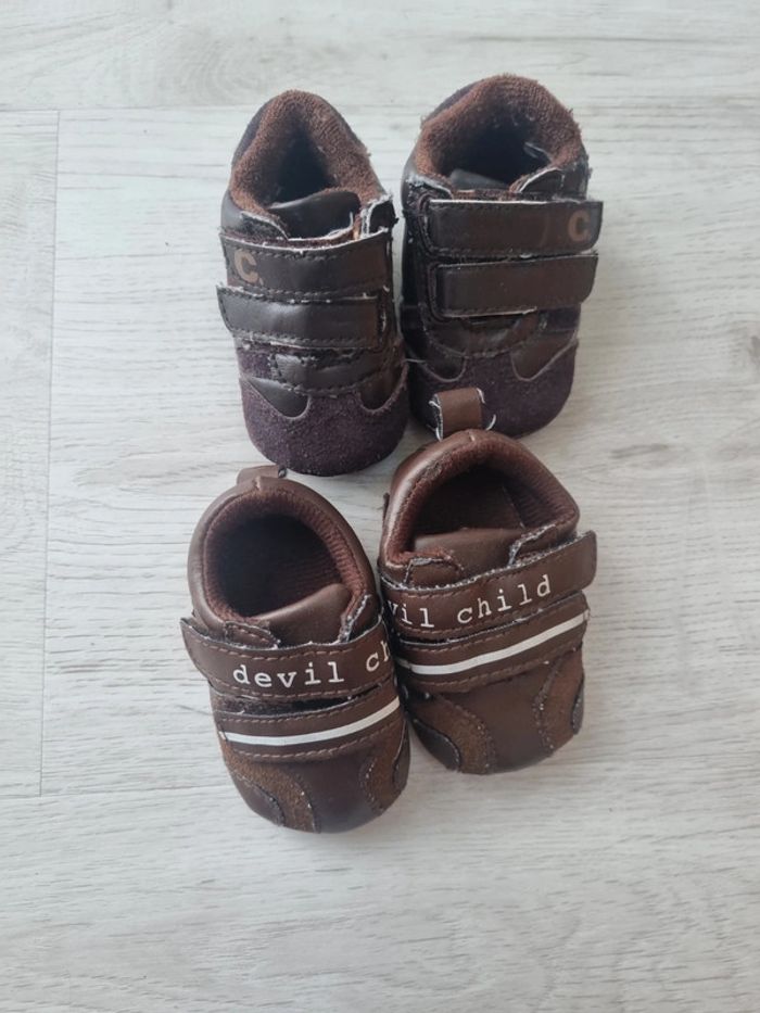 Lot 2 paires de Baskets souples 1 faux cuir et tissu, marron , scratch, devil Child, pointure 17 Et 1 creeks marron, souples, faux cuir et daim, scratch, pointure 17, semelles antidérapantes, légères usures à une semelle #somara66chaussures #somara66garconnaissance #somara66garcon1mois #somara66garcon3mois