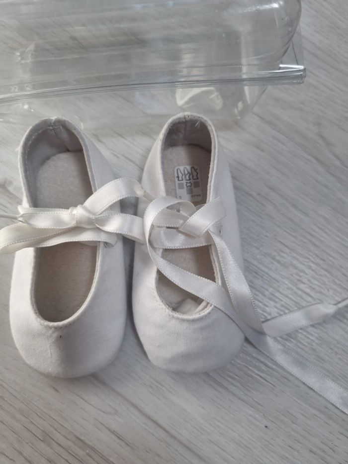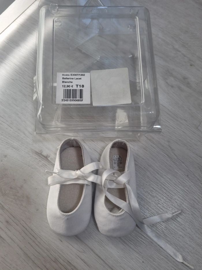 Ballerines souples lacet blanches 18 en coton bout' chou, vendues avec boite, 3-6mois #somara66chaussures #somara66fille3mois #somara66fille6mois