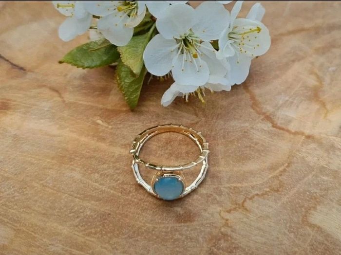 Bague double rangs en plaqué or et agate bleue taille 54 neuve - photo numéro 2