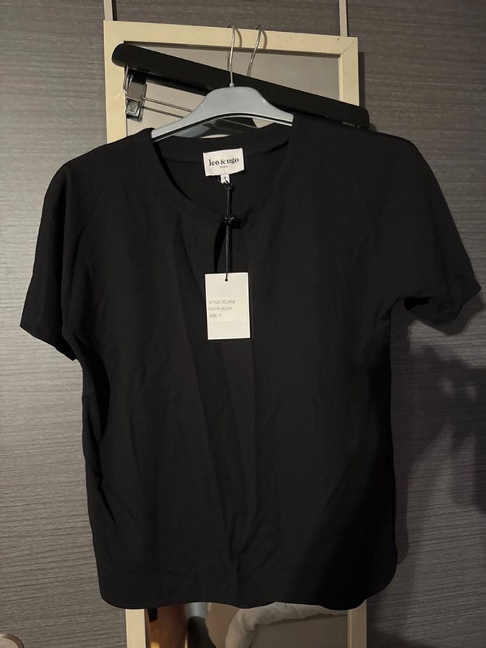 T-shirt, très léger avec petite fantaisie fleur au décolleté 63 % viscose, 37 % polyamide Taille : 1