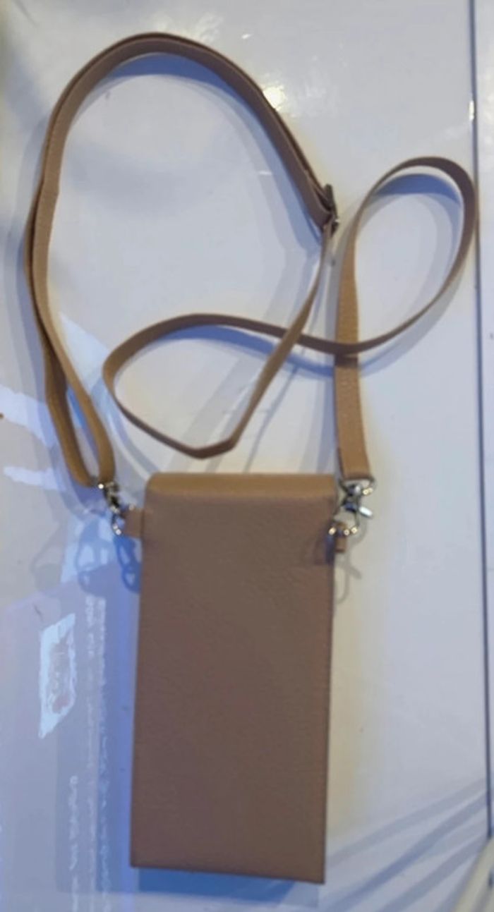 Pochette pouvant servir pour ranger le téléphone, hauteur 16 cm, profondeur, 3,5 cm Largeur 8 cm intérieur en feutrine rabat aimantée anses réglable Matière similicuir