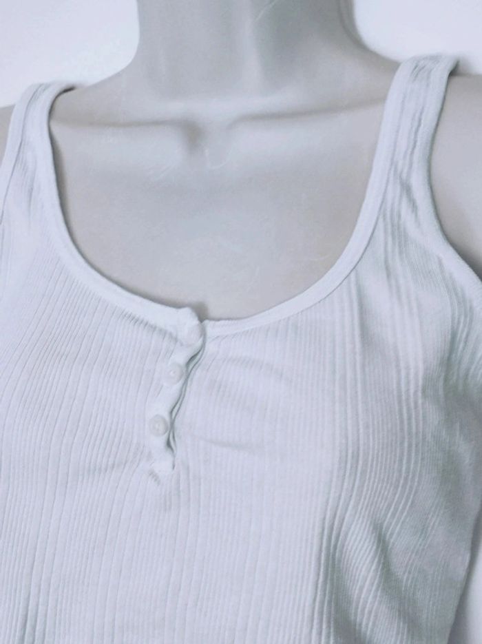 Tissu côtelé. Petit bouton à l'avant. Léger et confortable Parfait pour l'été Style y2k 2000s 90s streetwear chill bohème boho indie hippie Débardeur court blanc uni #flocofemme36