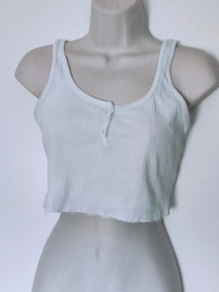 Crop top bretelles  blanc bouton Bershka - photo numéro 1