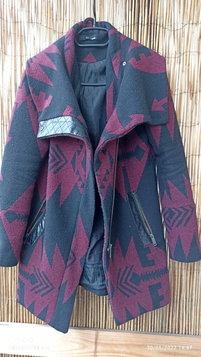 Manteau Bordeaux Motif Noir Tailly Weijl - photo numéro 1