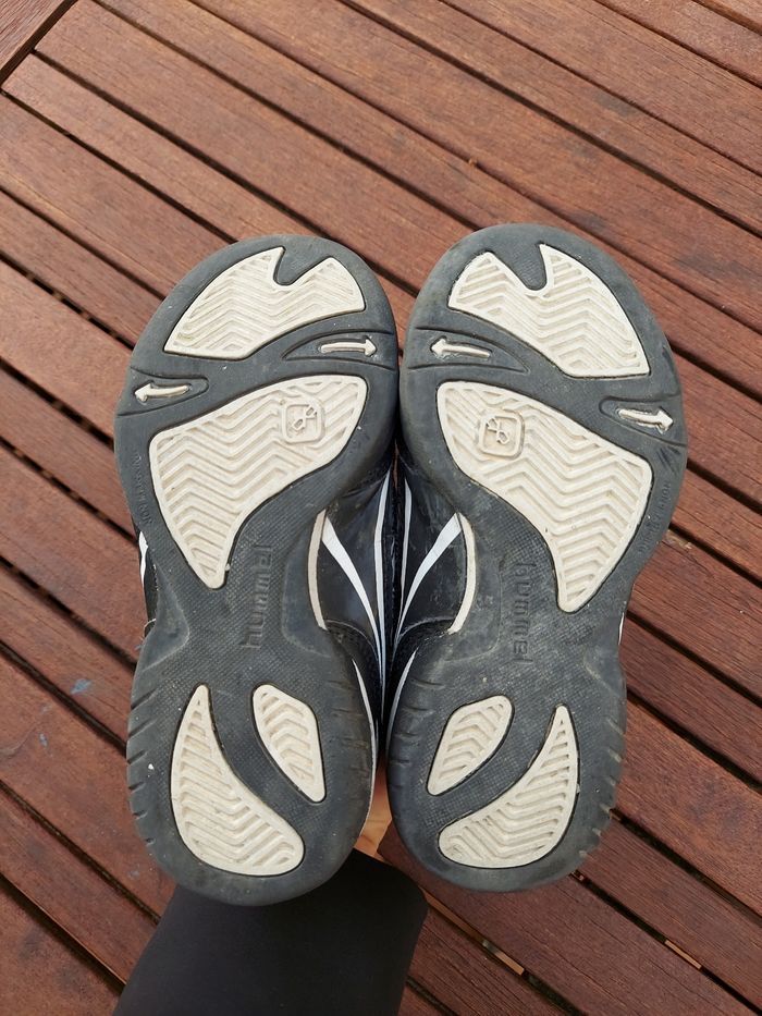 📌Si c'est votre première commande utiliser le code parrainage dans mon profil vous aurez une réduction 📌basket de salle , hummel , bon etat Bout un peu use et la languette aussi voir photo