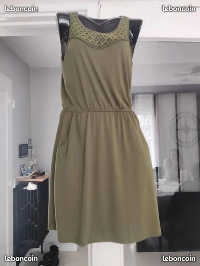 Robe d'été kaki taille S 36 avec poches sur les côtés envoi très rapide et si vous choisissez l'envoi par mondial relay je dépose au centre de tri mondial relay directement pour réception du colis très rapide. #sylvief95_femme36