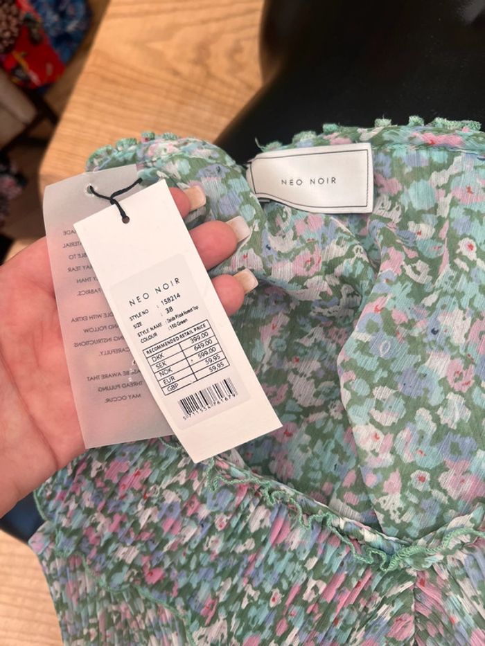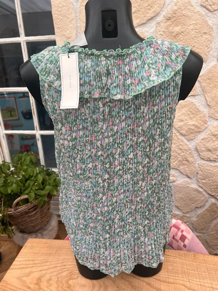 Neuf étiqueté Blouse tunique débardeur Néo noir vert à fleurs rose voilage taille 38 M - photo numéro 7