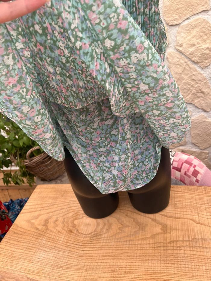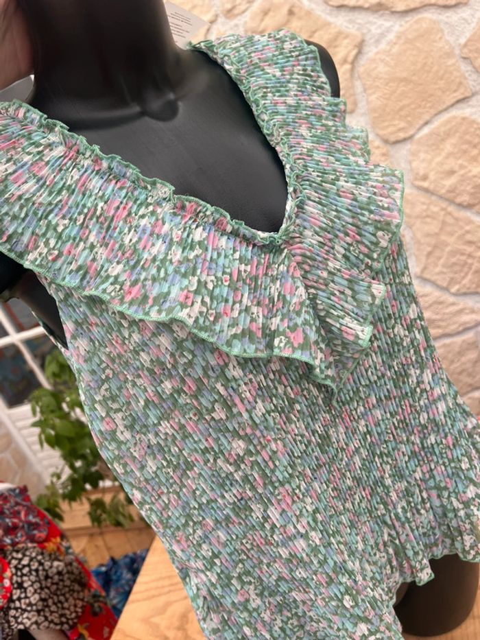 Blouse tunique débardeur néo noir vert à fleurs rose voilage taille 38 M Neuf avec étiquette à 59€95