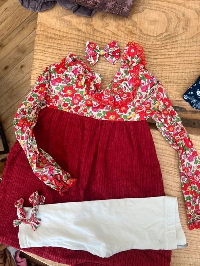 Lot fille automne hiver 18 - 24 mois / 2 ans - Robe legging et pince en Liberty (même tissu que Jacadi) et velours côtelé superbe porté fait par une créatrice - robe de soirée / princesse / créateur tape à l’œil 2 ans - ensemble sergent major robe 2 ans bon état foulard Tbe bandeau Tbe + collants pas de la marque - ensemble Bodie côtelé 2 ans Tbe / jupe Zeeman 2 ans Tbe / bandeau créatrice en velours rouge foncé Tbe / chaussettes hautes côtelées Tbe avec gros noeud en satin - ensemble blouse kiabi 24 mois Tbe / jupe velours lisse 18 mois tape à l’œil bon état / chaussettes hautes tape à l’œil chat bon état - gilet en laine rose long 2 ans Tbe tape à l’œil - ensemble Bodie à rayures kiabi 24 mois / jupe à bretelles Zara 18 mois - chaussons en cuir bien portés - chausson Minnie bon état Soit 20 articles pour 30€ soit 1€50 / pièce