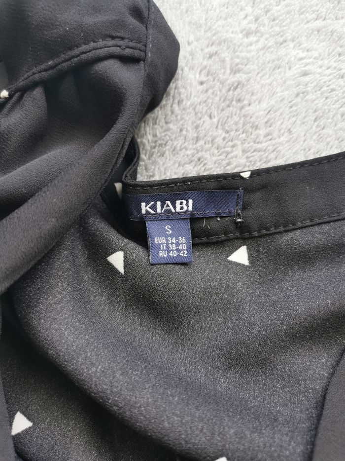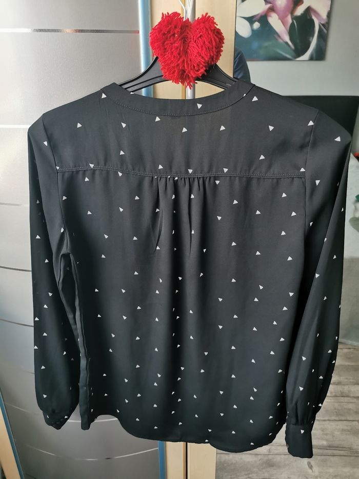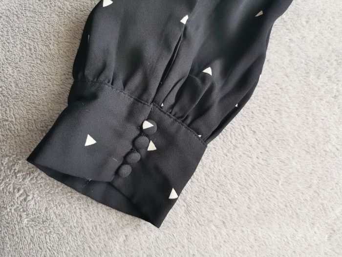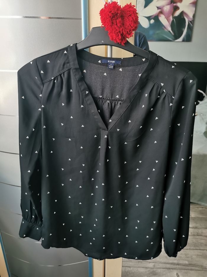 Blouse/chemise Kiabi noire avec triangle blanc, ample et légère, taille S 34 /36, plus d'étiquette, bon état.