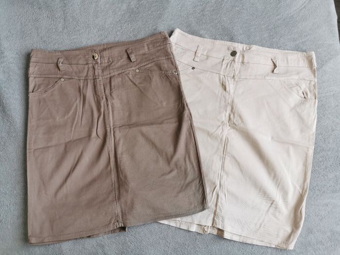 Jupe taille haute, marron clair, tissus fin stretch, je donne la jupe beige.