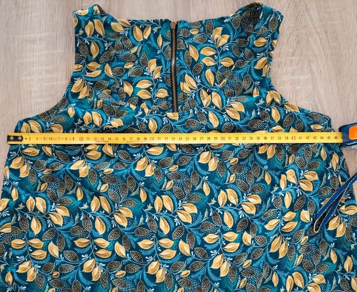 Très joli débardeur à motifs feuilles jaunes et bleu vert canard Camaïeu (étiquette manquante) Taille 36 Aisselles 46cm Longueur 60cm Fermeture éclair au dos Léger fluide et agréable à porter En très bon état #matka27_taille36 #débardeur #taille36 #camaieu #feuilles #motifs #jaune #vert #été