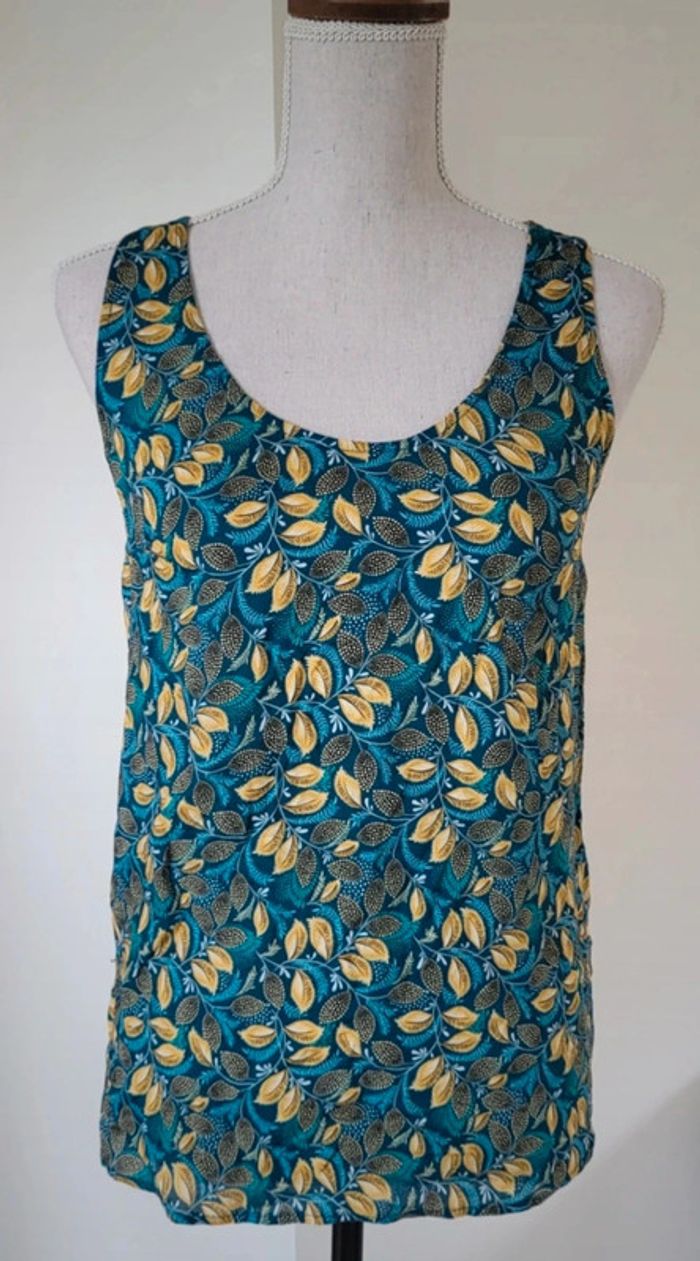 Débardeur à motifs feuilles jaune bleu vert Camaïeu Taille 36 - photo numéro 1