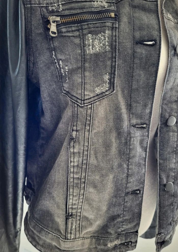 Veste en jean et simili cuir noire Spot Taille 40 - photo numéro 9