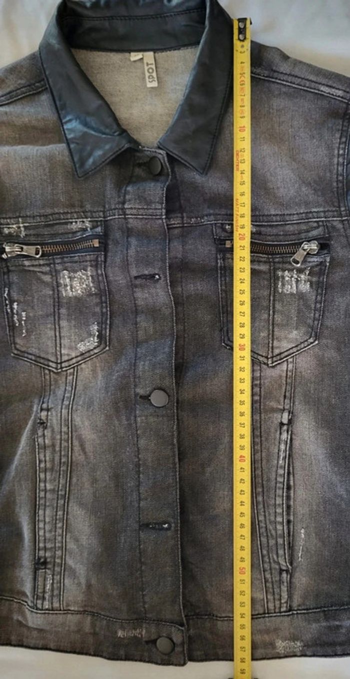 Veste en jean et simili cuir noire Spot Taille 40 - photo numéro 11