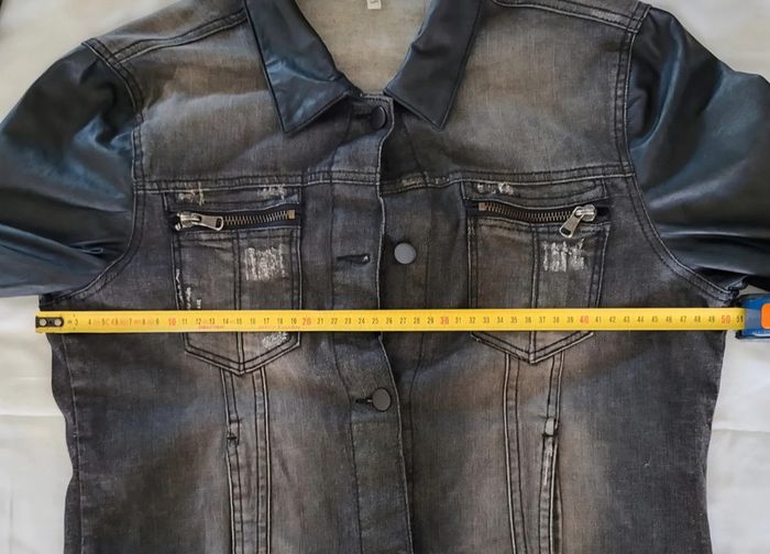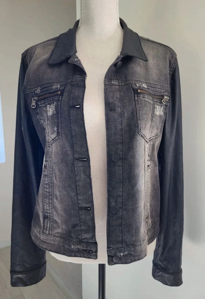 Veste en jean et simili cuir noire Spot Taille 40 - photo numéro 1