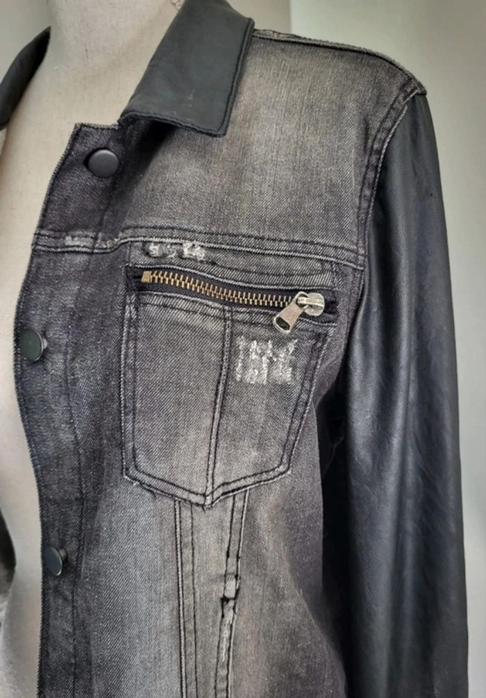 Veste en jean et simili cuir noire Spot Taille 40 - photo numéro 2