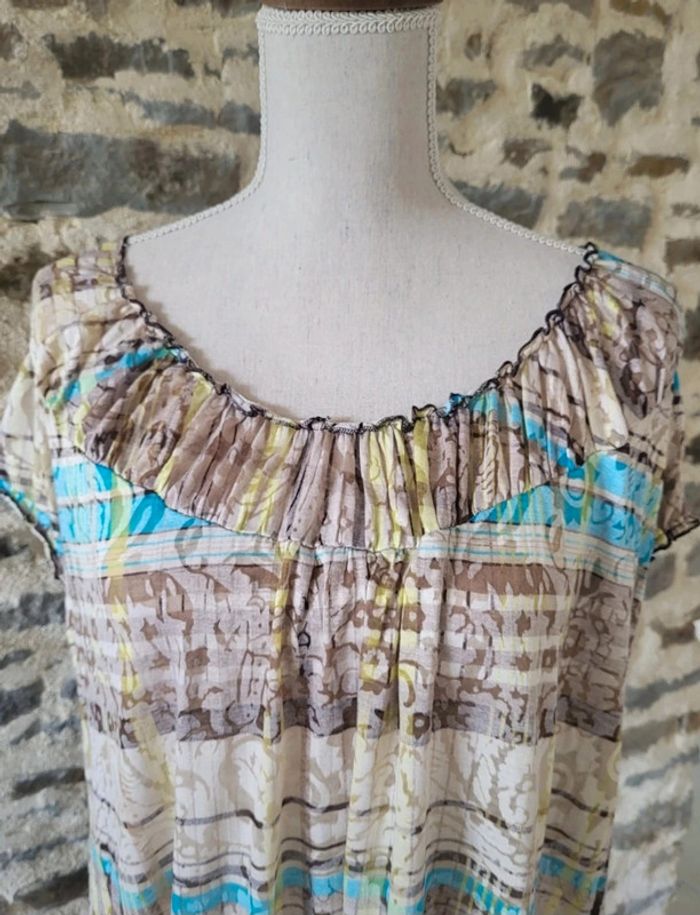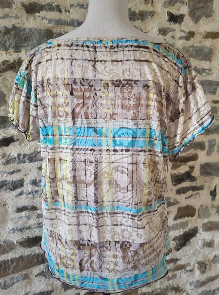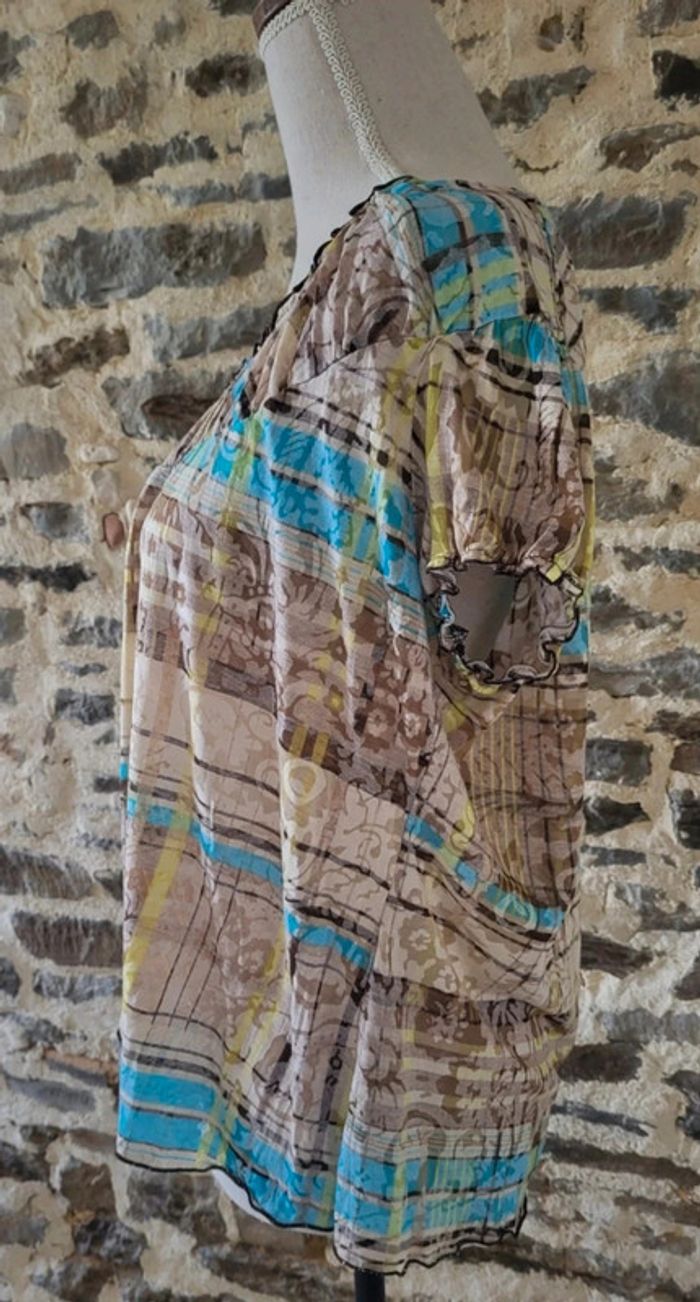 Blouse manches courtes à motifs bleu turquoise et beige Patrice Breal Taille 5 ou 44/46 - photo numéro 10