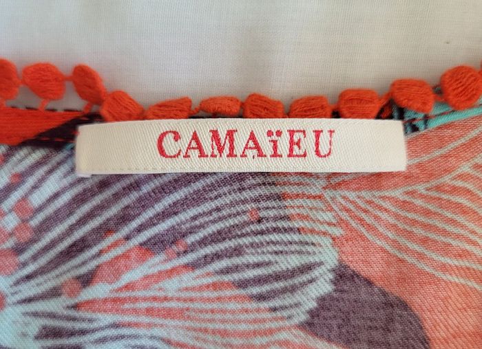 Robe d'été à fleurs hawaïennes bleu turquoise sur fond rouge corail Camaïeu Taille 36 - photo numéro 10