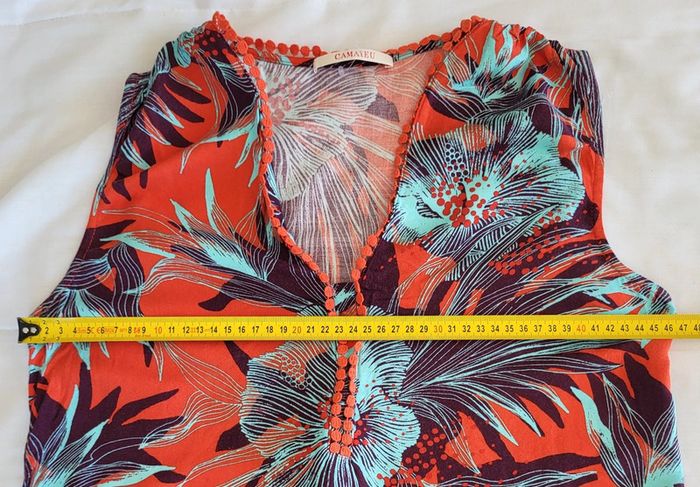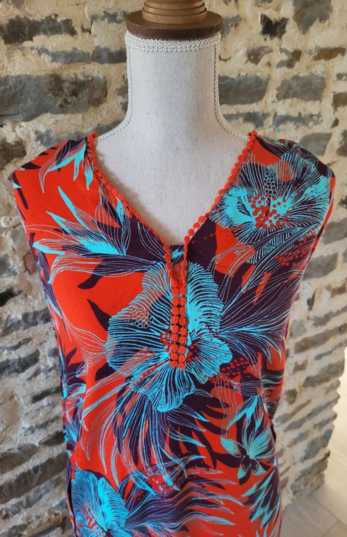 Robe d'été à fleurs hawaïennes bleu turquoise sur fond rouge corail Camaïeu Taille 36 - photo numéro 12