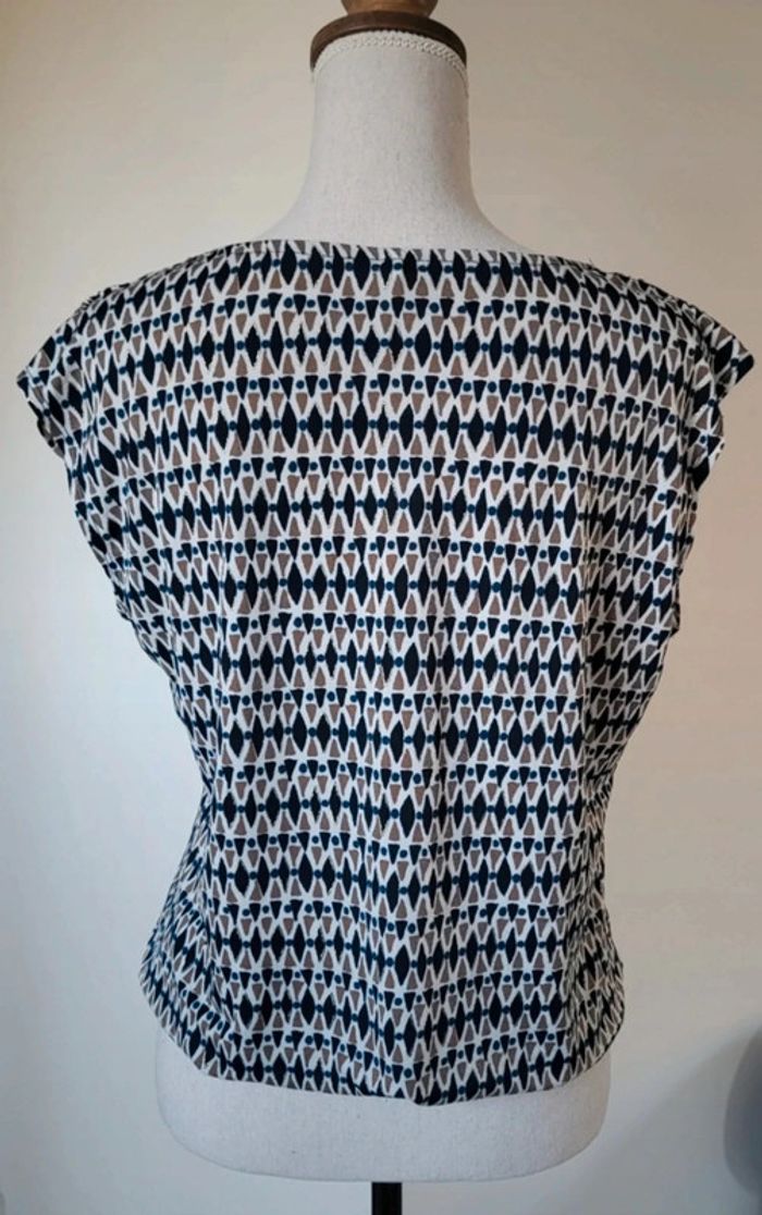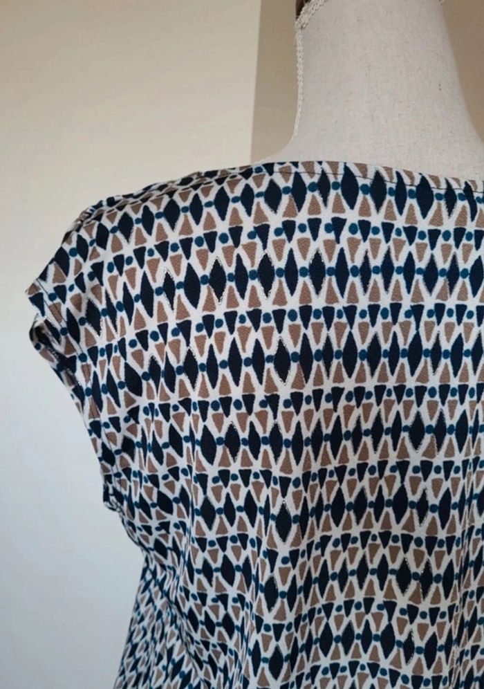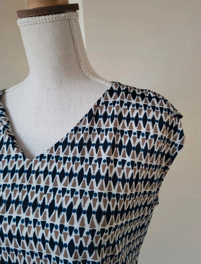 Blouse sans manches à motifs bleu marine blanc beige La Redoute Taille 1 ou 36 - photo numéro 5